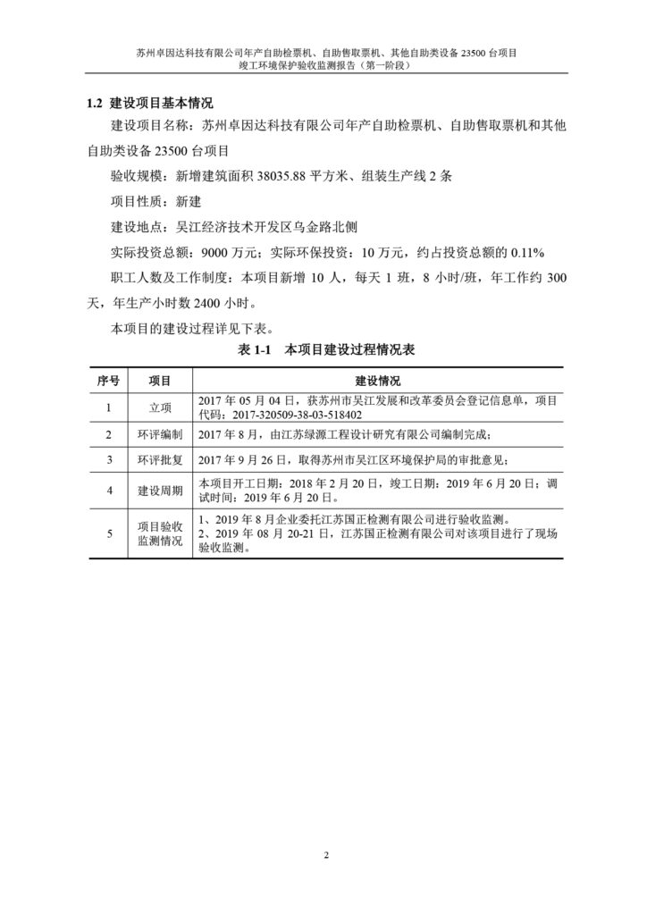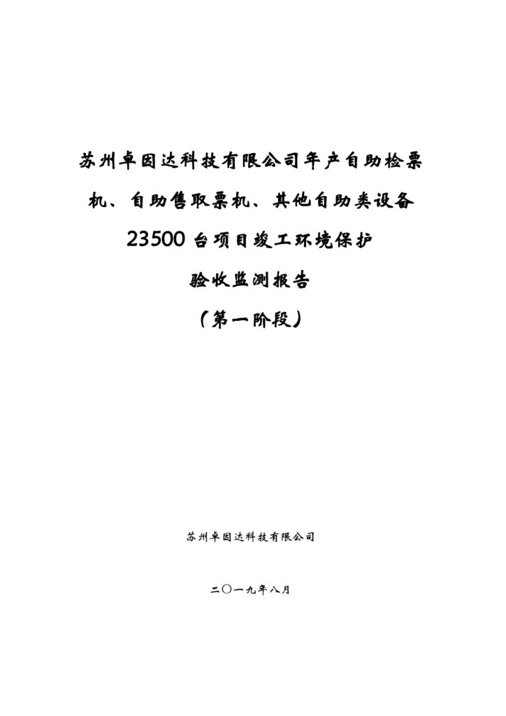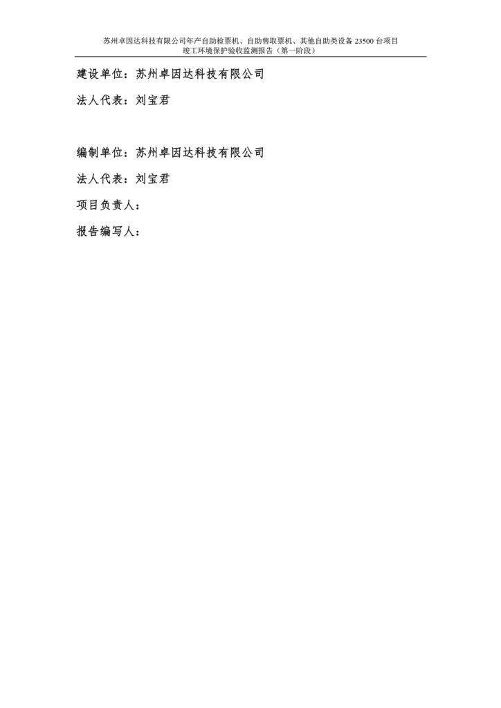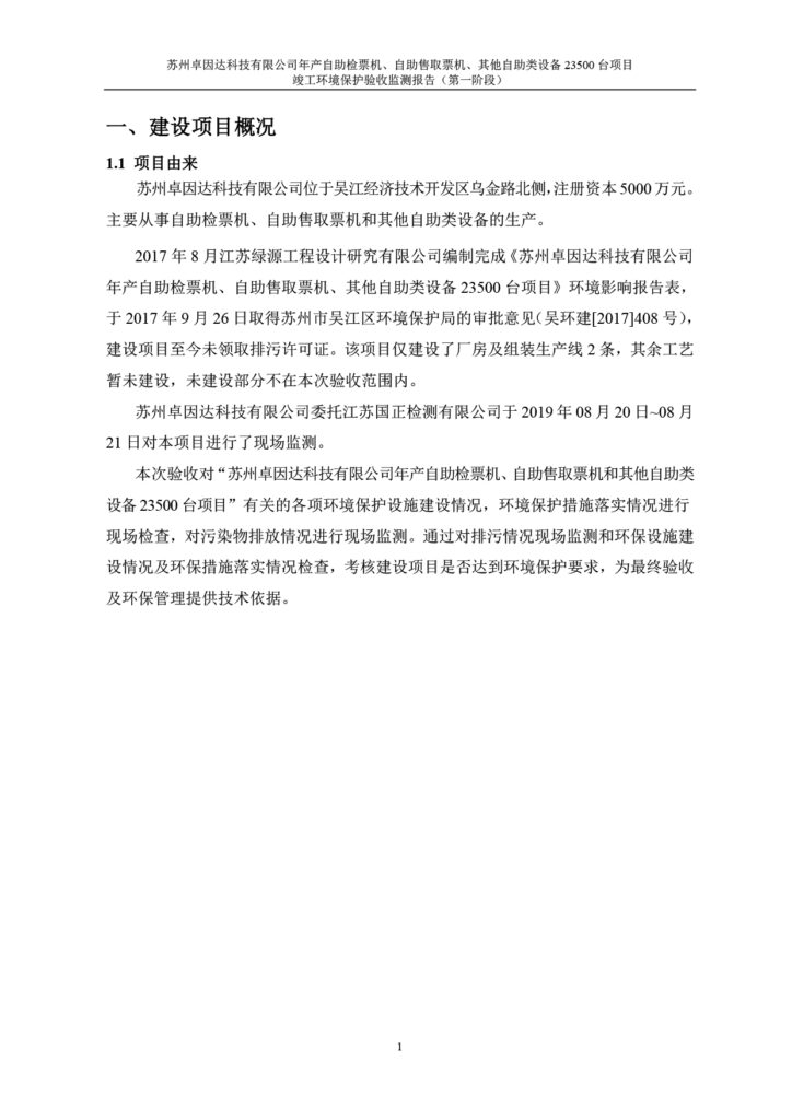 1、项目名称:苏州卓因达科技有限公司年产自助检票机、自助售取票机、其他自助类设备23500 台项目(第一阶段)