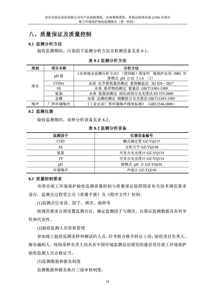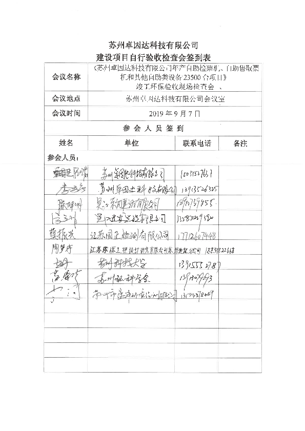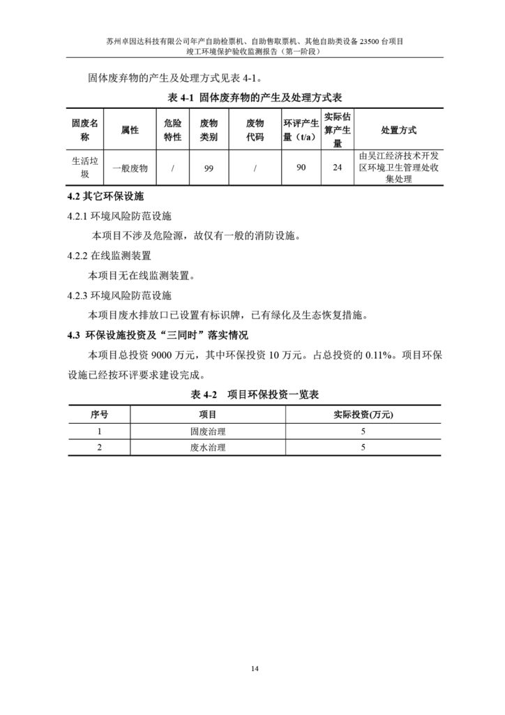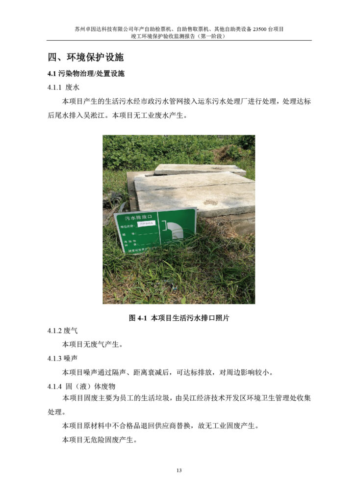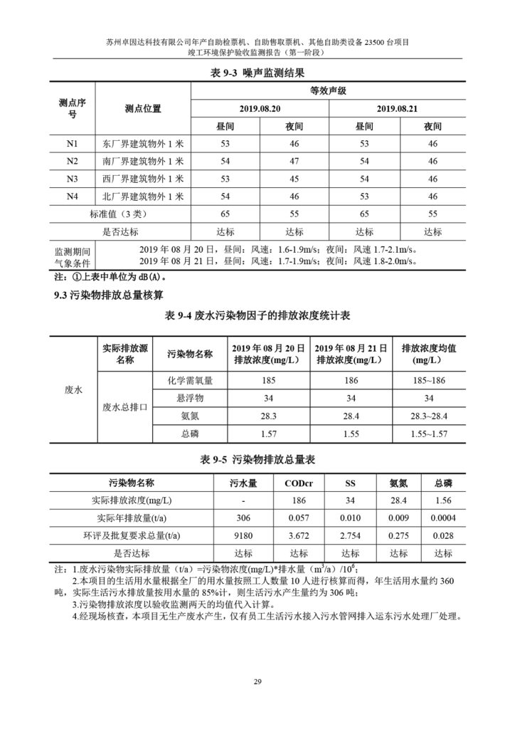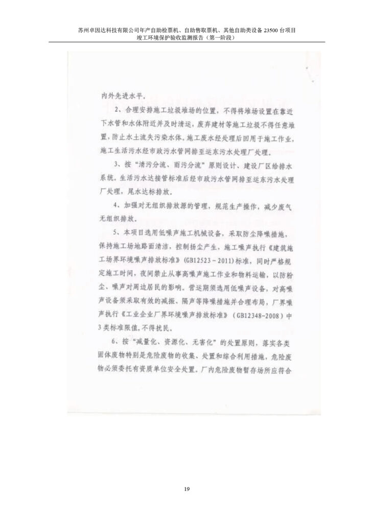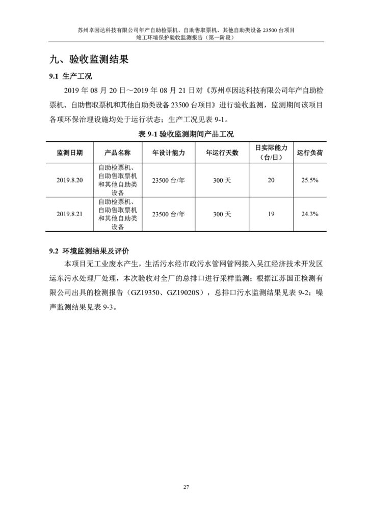 根据《国务院关于修改《建设项目竣工环境保护管理条例》的决定》,以及环保部《关于发布《建设项目竣工环境保护验收暂行办法》的公告》,现将《苏州卓因达科技有限公司年产自助检票机、自助售取票机、其他自助类设备23500 台项目竣工环境保护 验收监测报告 (第一阶段)》及验收意见公示如下: